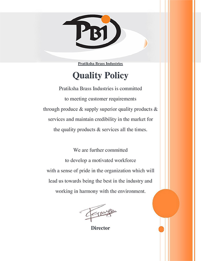 - We Pratiksha Brass Industries are committed to pursue Excellency through continual